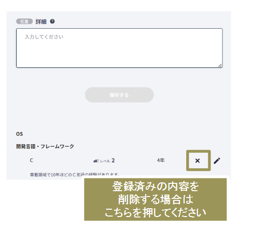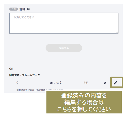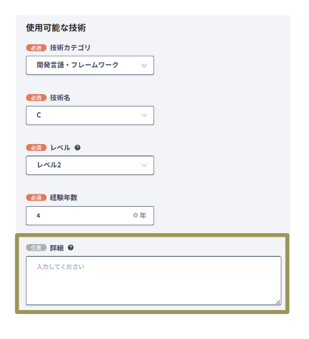 選択した「技術カテゴリ・技術」毎に、これに紐づく過去の経験・エピソードを説明します。